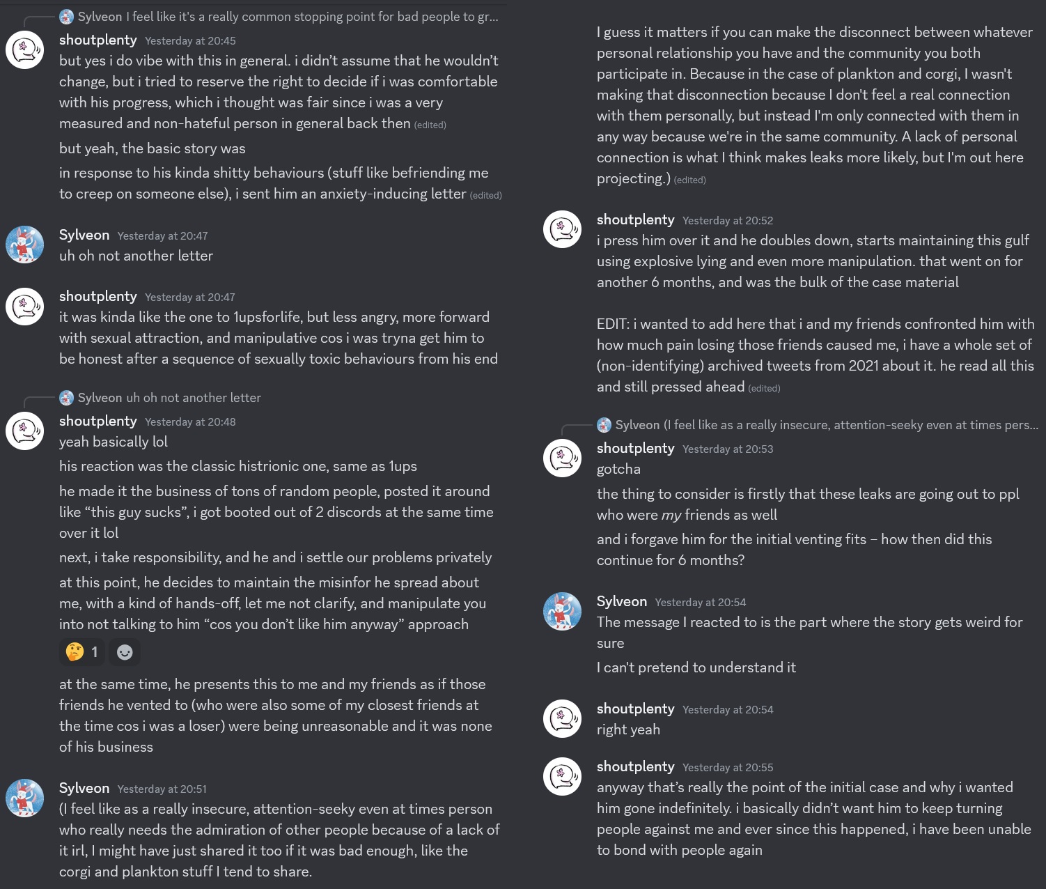 I have some older attempted explanations, which are rantier, one to an SMS mod and one to a Lumardy supporter. The original case includes a summary as well, which also has a copy of Lu’s apology. This 700-word summary outlines the manipulation techniques as they happened.
